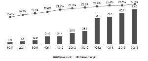 利润方面,唯品会第三季度毛利同比增多167.4%,从上一年同期的3480万美元提高至9300万美元。唯品会毛利润的增加,主要体现了总净营收的大幅增加和毛利率的持续增加。唯品会第三季度毛利率为24.2%,上一年同期为22.3%,毛利率的增多主要是由于公司的范围增加进一步提高了公司和供应商议价能力。