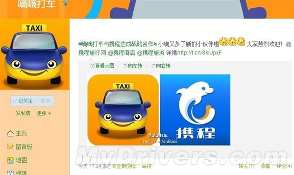 嘀嘀打车宣布牵手携程 携程客户端加入打车